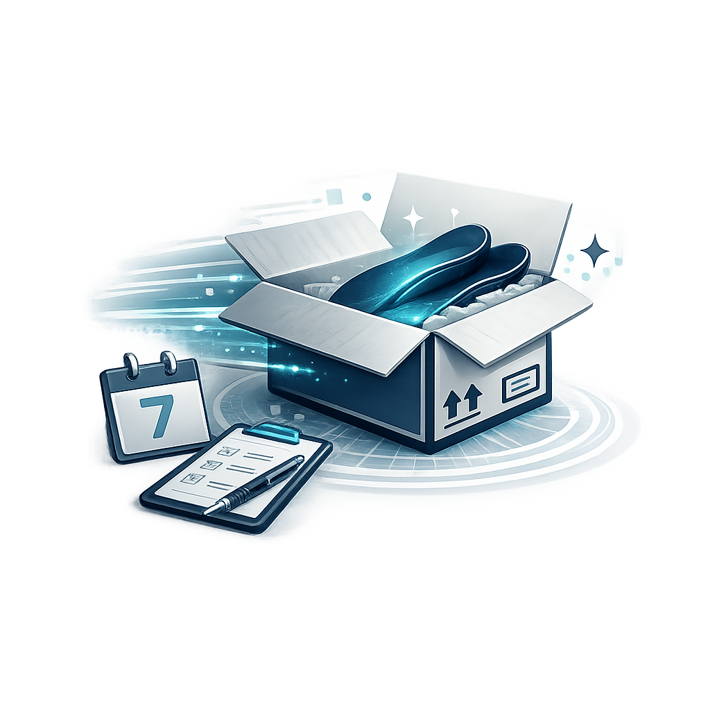 Your custom orthotics are crafted and shipped within 7 days, ready to support your movement.
